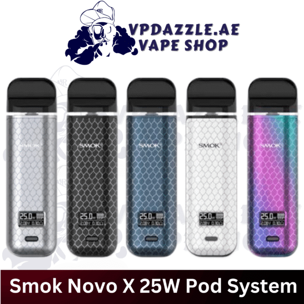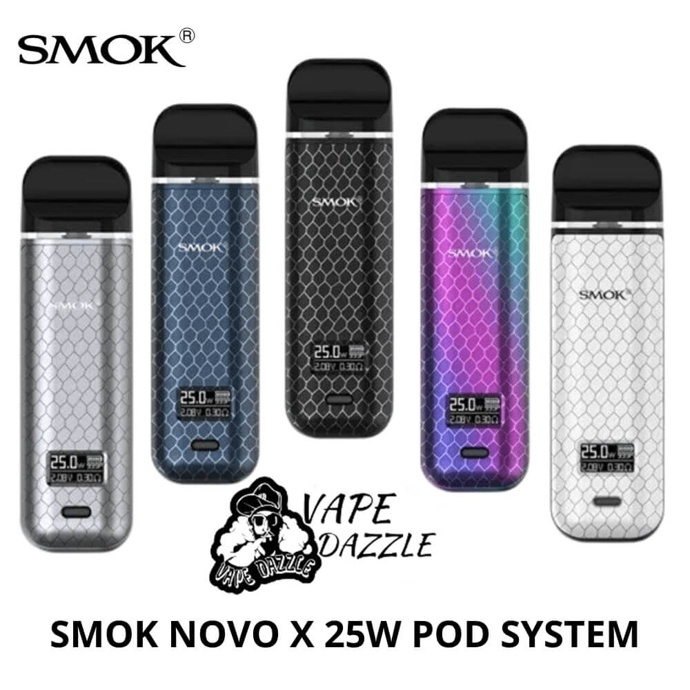 Discover the SMOK NOVO X 25W Pod System, featuring a 1-25W range, OLED Display Screen, and utilizes a 0.8ohm Mesh